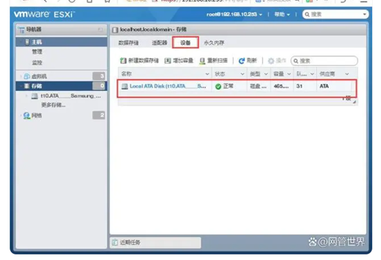 1. ESXI安裝的物理磁盤會在存儲---設備中