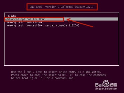 選擇 Advanced options for Ubuntu,如果是中文對應的是Ubuntu高級選項