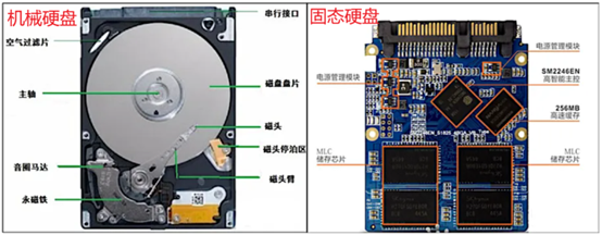 工作原理:機械硬盤使用磁性盤片和讀寫磁頭進行數據存儲和讀取。盤片旋轉時,磁頭在盤片表面移動來讀取或寫入數據。